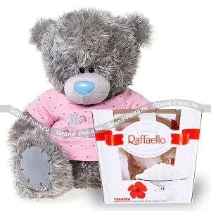 Маленькая сластена - подарочная корзина с цветами и сладостями