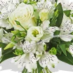 ЛЮКС: роза белая - 5 шт., альстромерия белая - 9 шт., эустома белая - 9 шт., салал, сетка зеленая. Примерный объем букета 40 см.